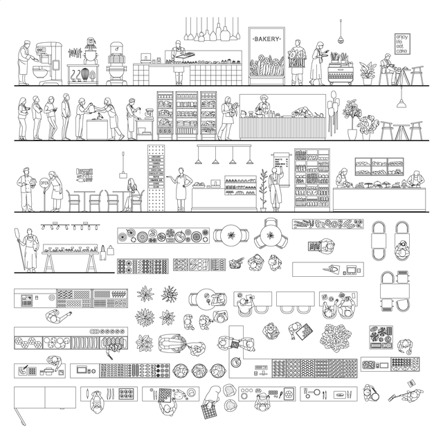 CAD, Vector All You Need for a Bakery and a Coffee Shop Design Multi Pack (Top, Side View)