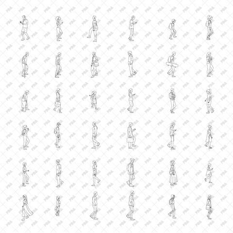 Description: Set of CAD, Vector, and PNG line-art people going up and down stairs in side view. Ideal for sections, elevations, architectural collages and other architectural documents.