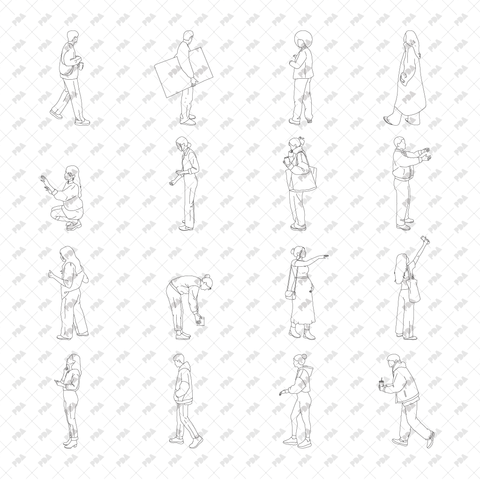 CAD Vector PNG Street People in Front and Side Views